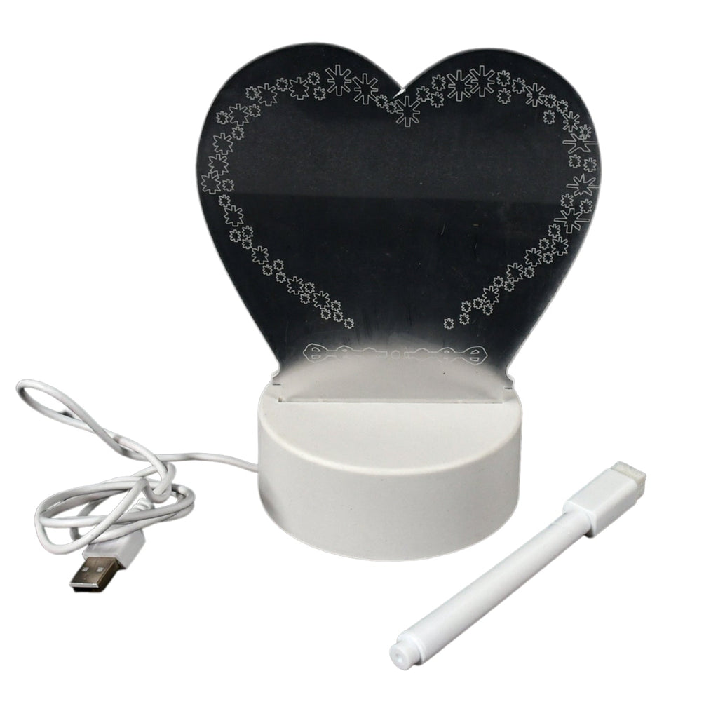 12939 Creative Visualization Lamp 3 D Acrylic Decorative Lamp for Creative Keeps Notes Drawing Table Lamp for Home Decor / Bedroom / Gift / Office Decoration / Erasable Board (Heart-Shape / 1 pc)
