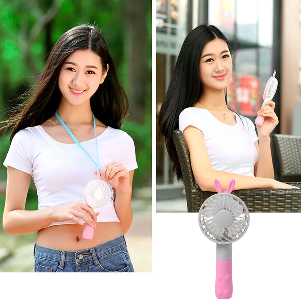 4811 Portable Princess Rabbit Styled Rechargeable Handheld Fan For Travel, home & Office Use (Battery Not Include)