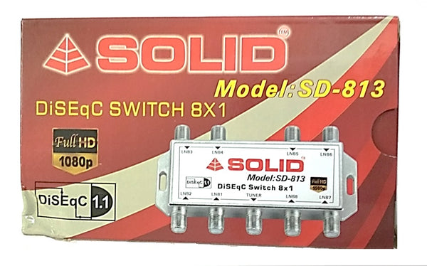 SOLID SD-813 DiSEqC 1.1 Switch - 8in1 Frequency - 900 - 2400 MHz Insertion Loss - 3 dB Power Passing - 500mA Max Input - 8 LNB Output - 1 Receiver Please Note : please...